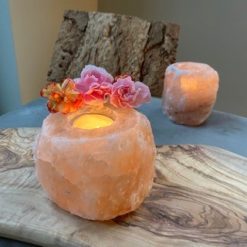 Dit is een natuurproduct en ieder product is anders. De gegeven afmetingen en gewicht zijn een indicatie. De kleur van de waxinelichthouder kan donkerder of lichter roze/oranje zijn dan op de foto. Zoutkristal is een natuurlijke grondstof en is niet bijgekleurd.