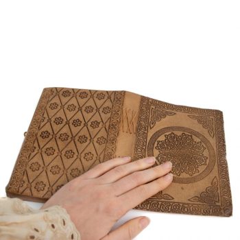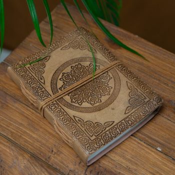 Dit unieke leren notitie-, teken- of dagboek met mandala is handgemaakt. Noteer of teken je inzichten, lessen, mooie one-liners, wensen, mindmap of things to do in dit natuurlijke boek.